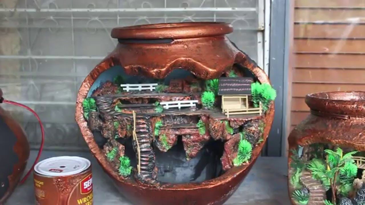 Cara Membuat Miniatur Air Terjun Di Dalam Gentong Youtube