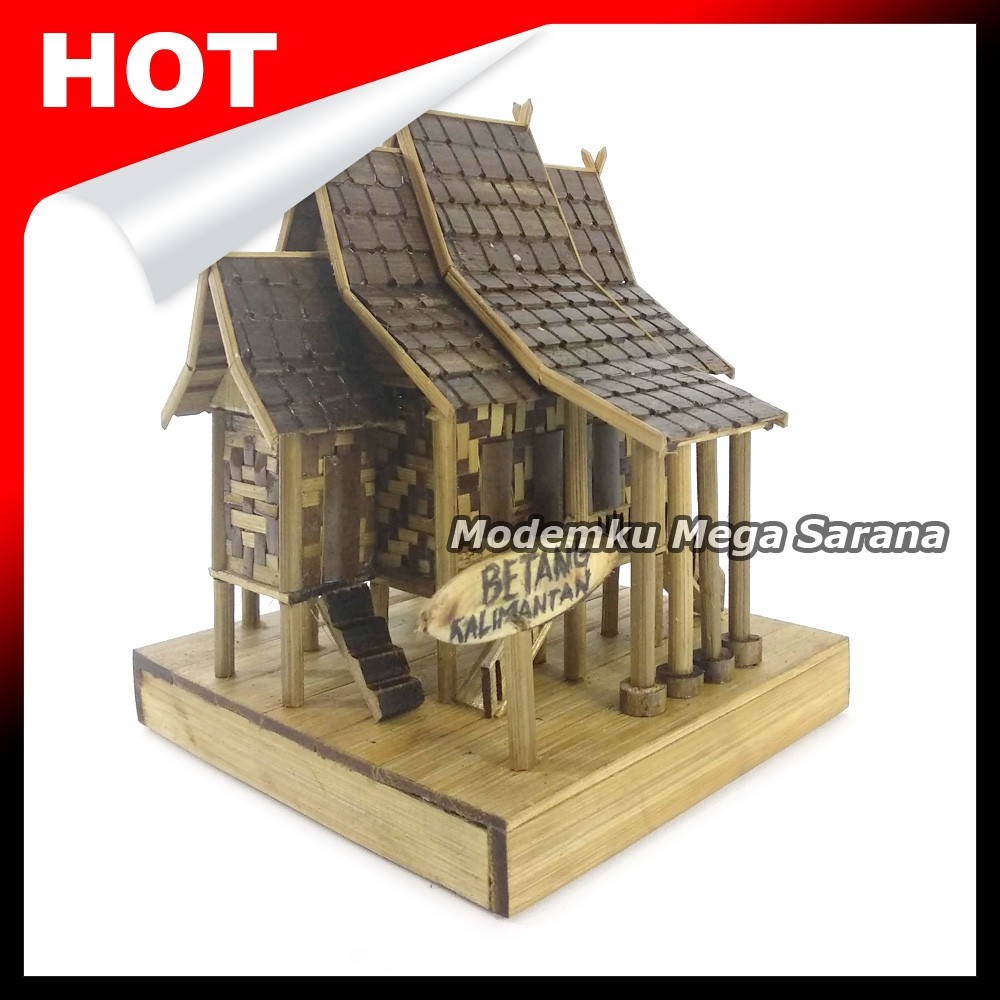 Miniatur Rumah Adat Betang Kalimantan Dari Bambu 14x14x17cm