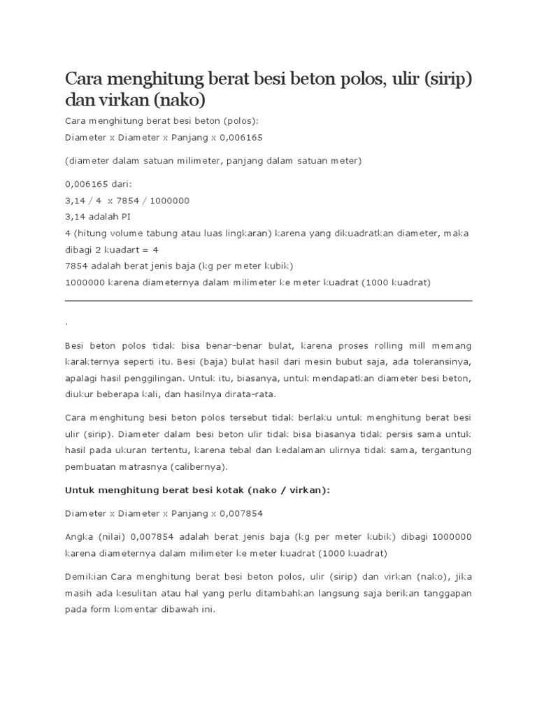 Pdf Cara Menghitung Berat Besi Beton Polos Hendhira Astianto