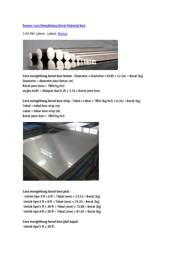 Kumpulan Rumus Menghitung Berat Material Works Process