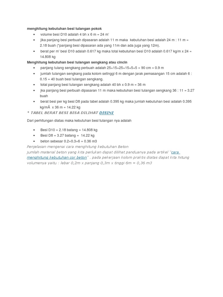 Rumus Menghitung Besi Kolom