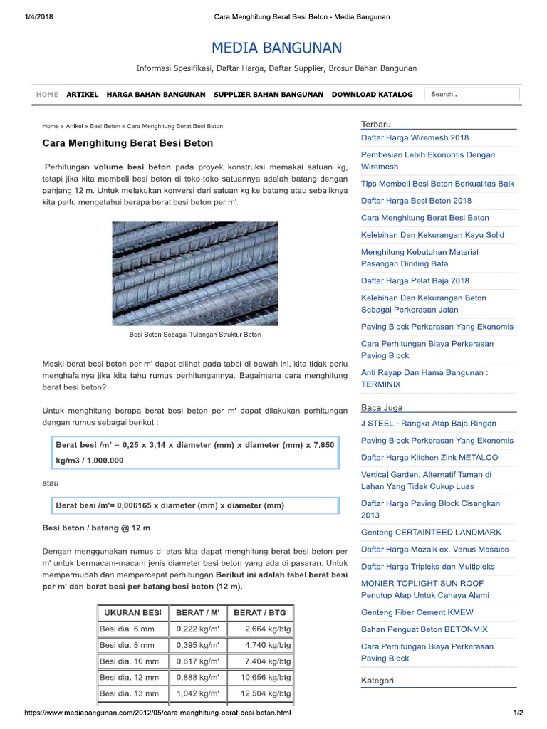 Rumus Menghitung Berat Besi Beton