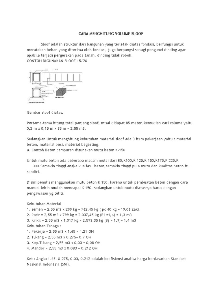 Cara Menghitung Volume Sloof Beton Bertulang Ilmuproyek Com
