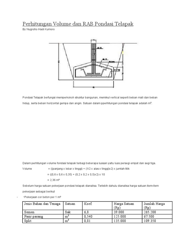 Cara menghitung kebutuhan pondasi telapak. Menghitung volume pondasi setelah pada pembahasan berikutnya kami sudah menginformasikan tentang berbagai cara pada bidang matematika pada kesempatan kali ini kami akan membahas bidang lain yang berhubungan dengan properti dan rumah yakni cara menghitung volume pondasi rumah. Meliputi usaha pertambangan mineral bahan kimia dan pupuk termasuk usaha penghancuran pembersihan dan pengolahan dengan cara lain terhadap mineral bahan kimia. Hal ini dapat dilihat dengan cara pembuatan pondasi dalam yang pada umumnya hanya mampu dilakukan pada kedalaman tertentu. Penggalian lubang pondasi tiang pancang dengan tenaga manusia adalah penggalian lubang pondsi yang masih sangat sederhana dan merupakan cara konvensional.