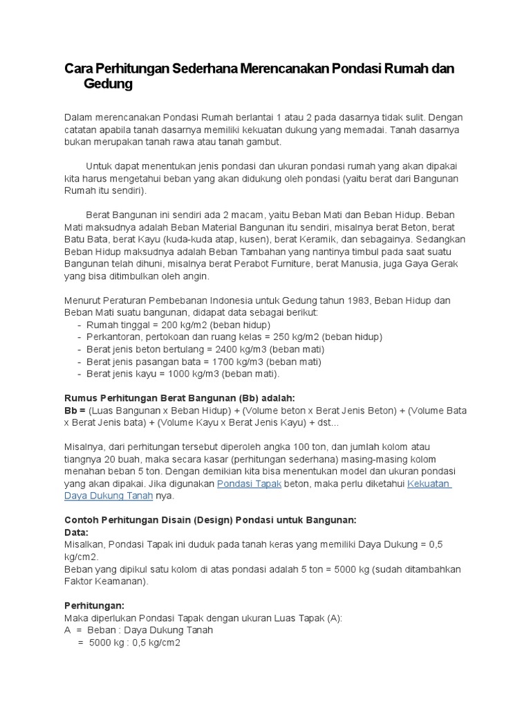 Cara Perhitungan Sederhana Pondasi Rumah Dan Gedung
