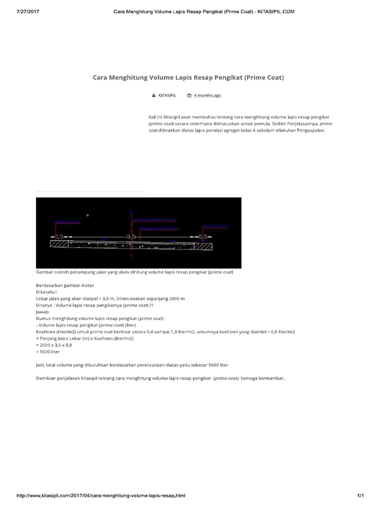 Cara Menghitung Volume Tack Coat Dan Prime Coat Ilmuproyek Com