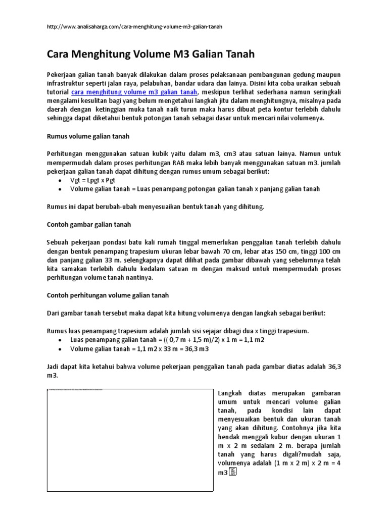 Cara Menghitung Volume M3 Galian Tanah Ilmurumah Com