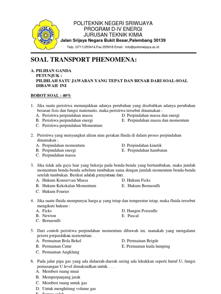 Soal Transport Phenomena Pdf