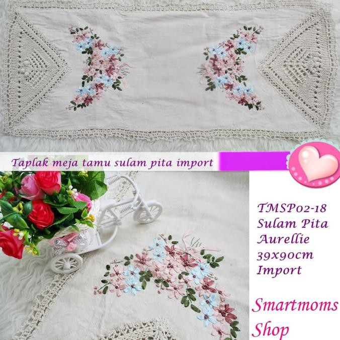 Taplak Meja Tamu Cantik Mewah Jala Sulam Pita Felisha 40x90cm