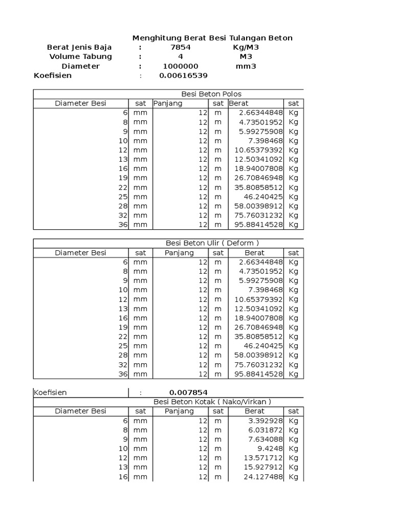 Rumus Menghitung Berat Besi Beton Tanpa Menggunakan Tabel Baja