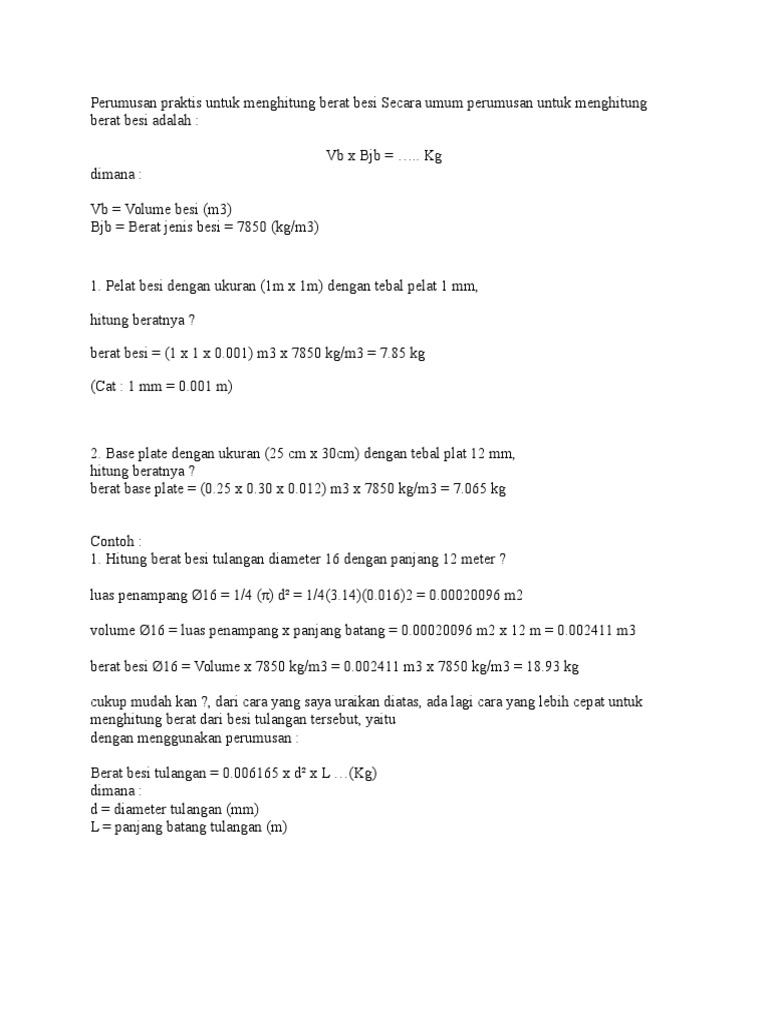 Doc Cara Cepat Menghitung Berat Besi Tanpa Tabel Rionaldi