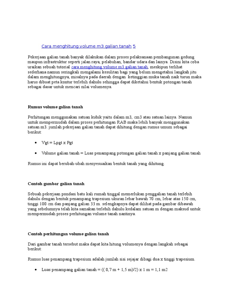Cara Menghitung Volume M3 Galian Tanah Ilmurumah Com