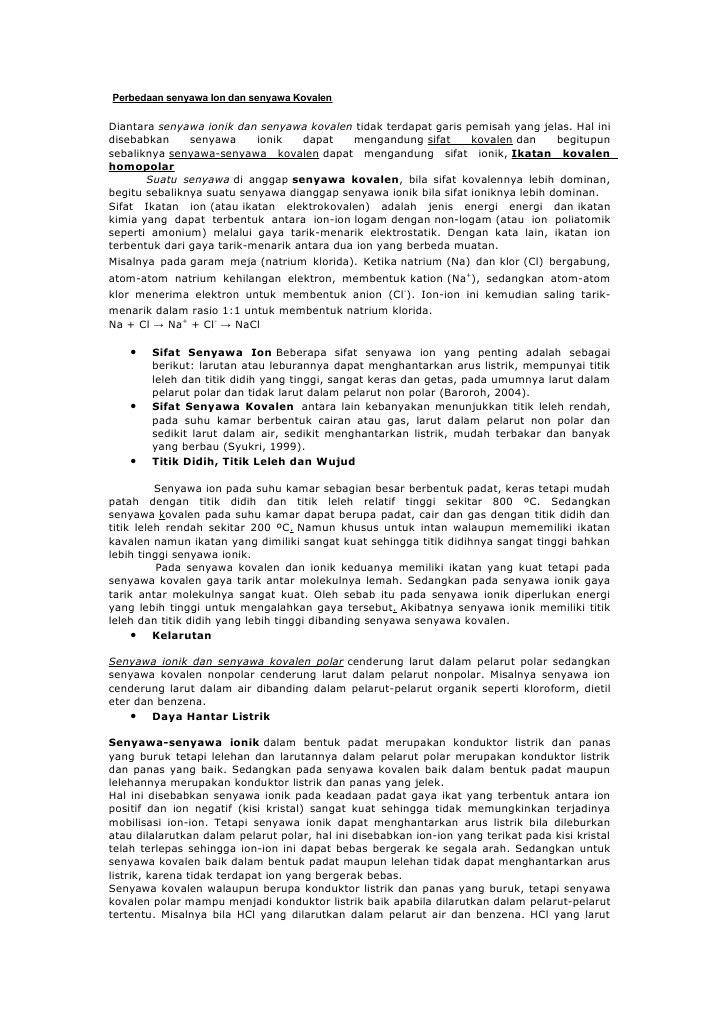 Sebutkan Perbedaan Sifat Antara Senyawa Ion Dengan Senyawa Kovalen