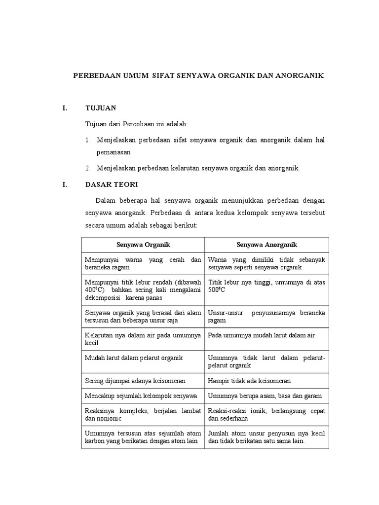 Perbedaan Umum Sifat Senyawa Organik Dan Anorganik