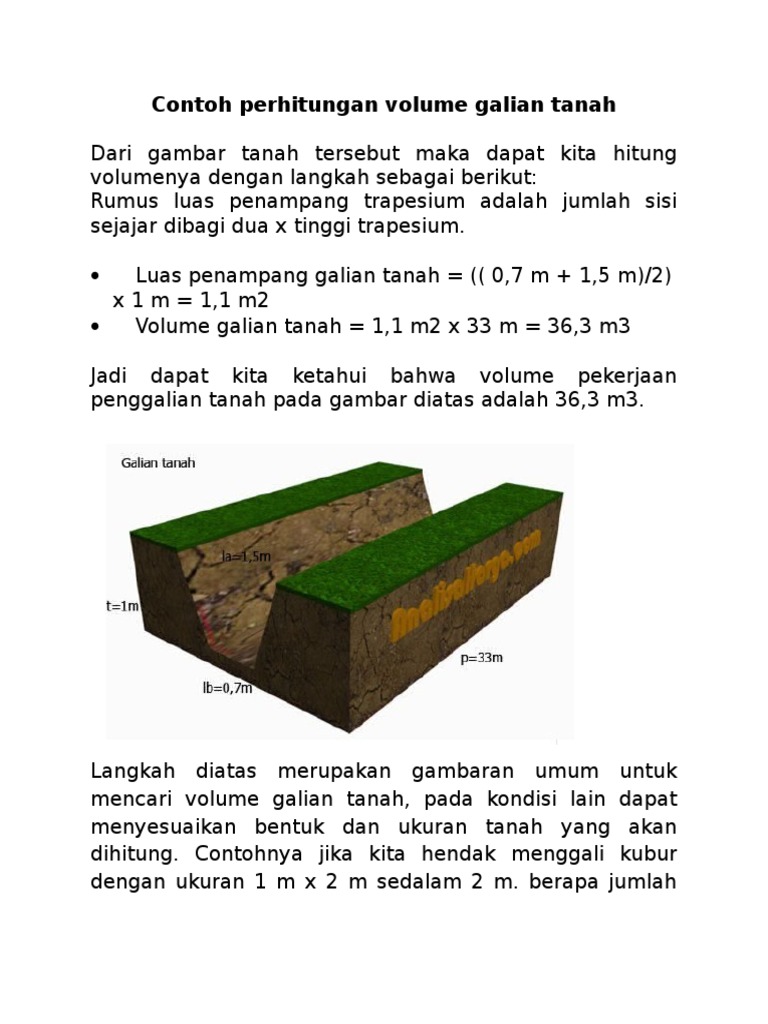 Cara Menghitung Volume M3 Galian Tanah Ilmurumah Com