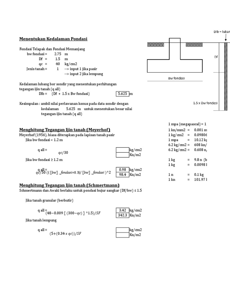Perhitungan Pondasi Telapak Xls