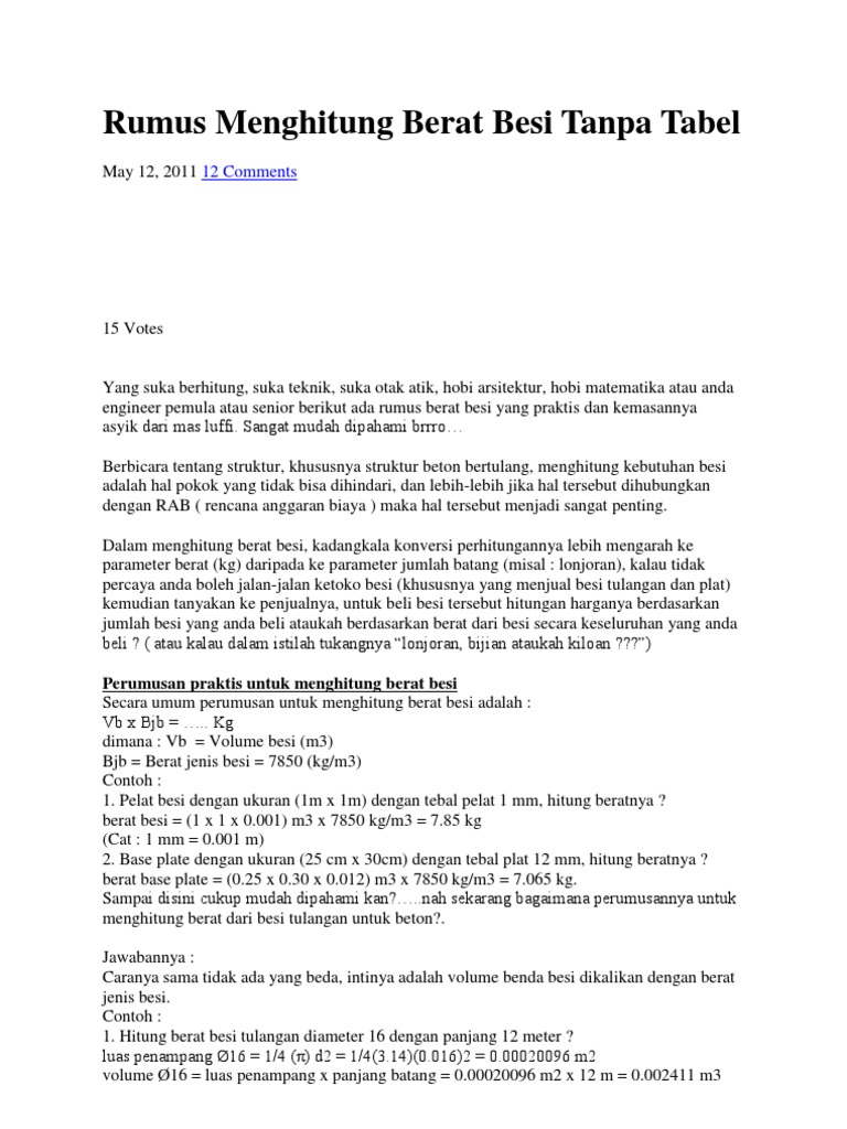 Doc Cara Cepat Menghitung Berat Besi Tanpa Tabel Rionaldi