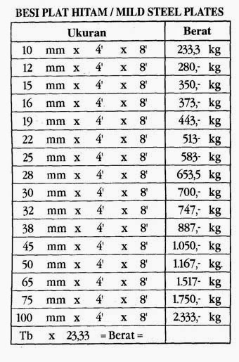 Daftar Tabel Berat Besi Plat Hitam Eser Besi Permata